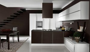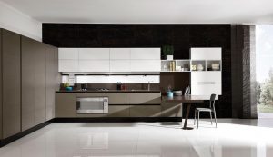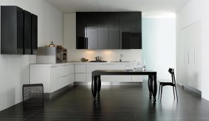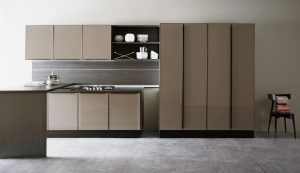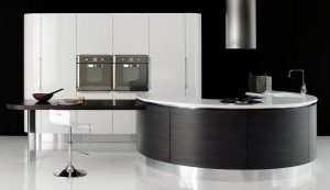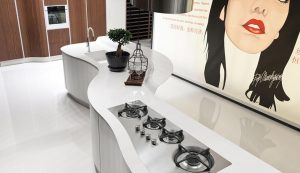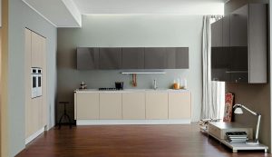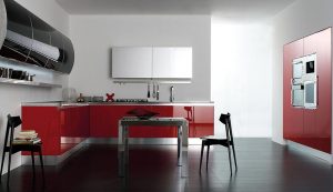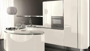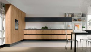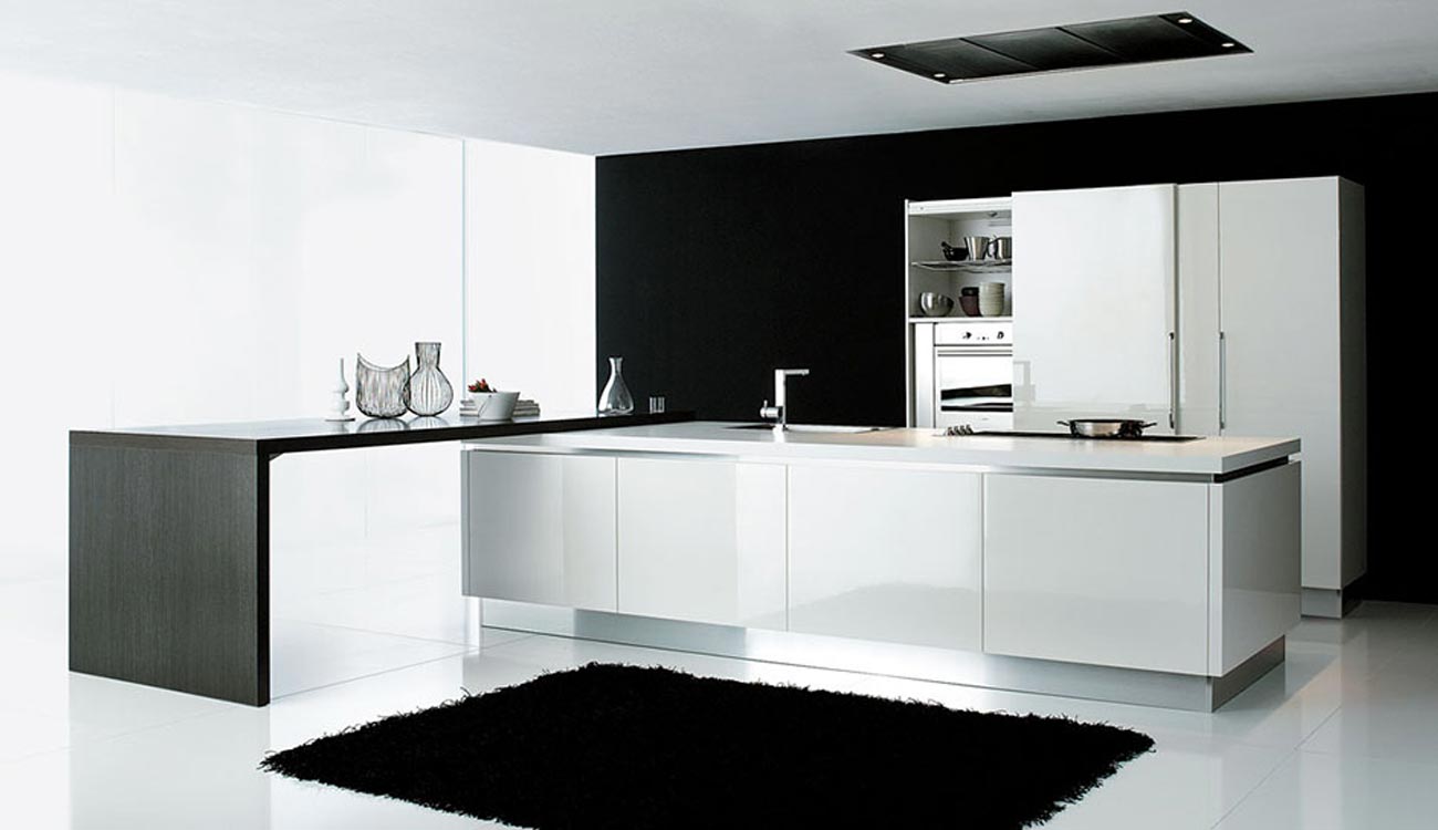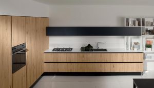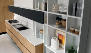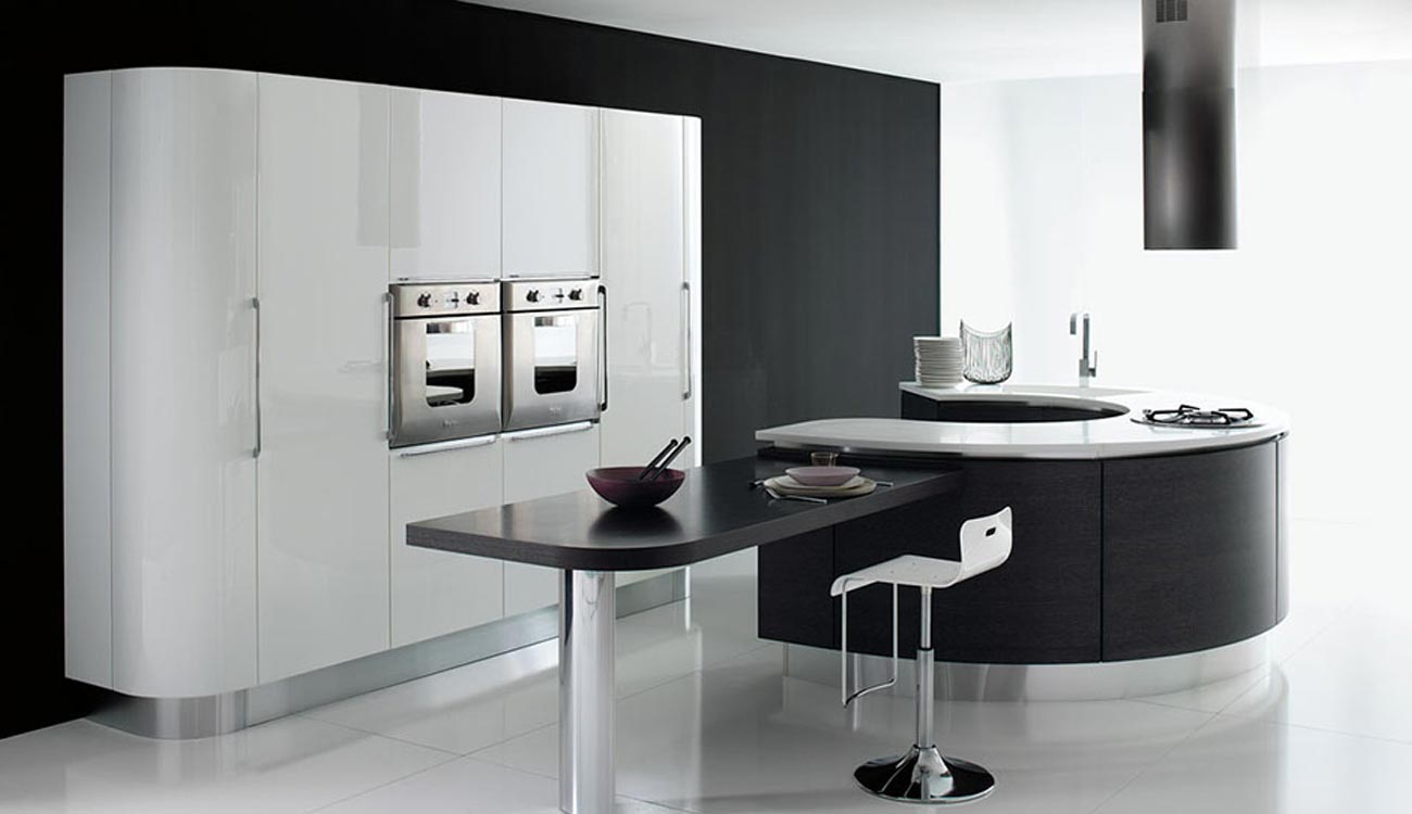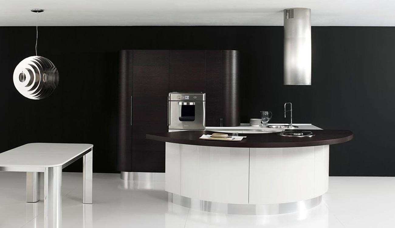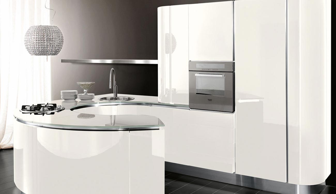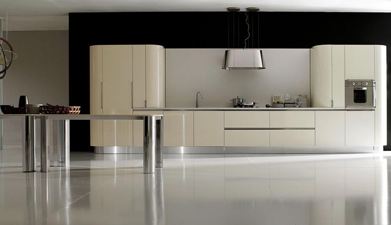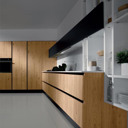 La sensación de continuidad entre cocina y zona living se enfatiza por la sinuosa silueta o por los cortes horizontales de la Volare lacada, madera o pino amarillo, que toman su lugar en espacios luminosos y amplios.